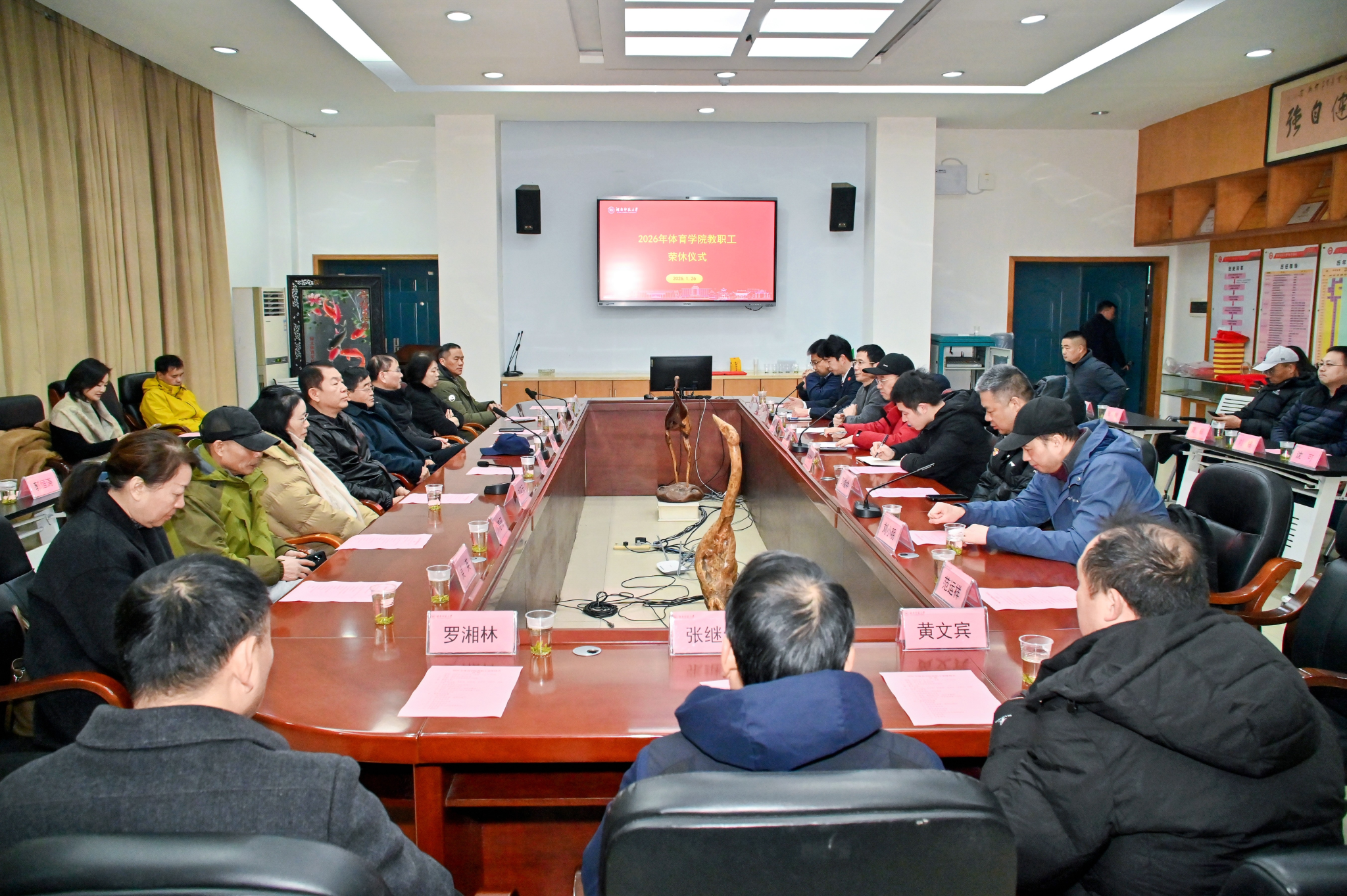 1月26日上午,William威廉官网2026年度教职工荣休仪式在教学楼一楼会议室举行。校离退休工作处党委书记尹建新、副处长方俊雄,院党委书记李波、副院长郭献中出席活动,活动由院党委副书记李皓主持。