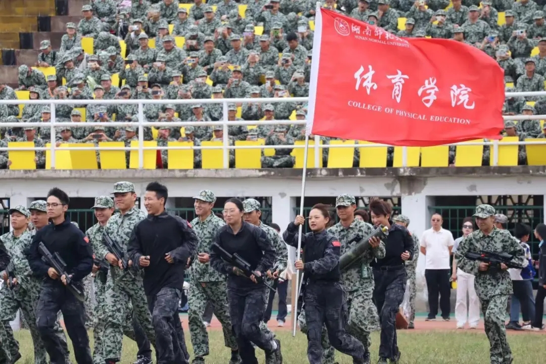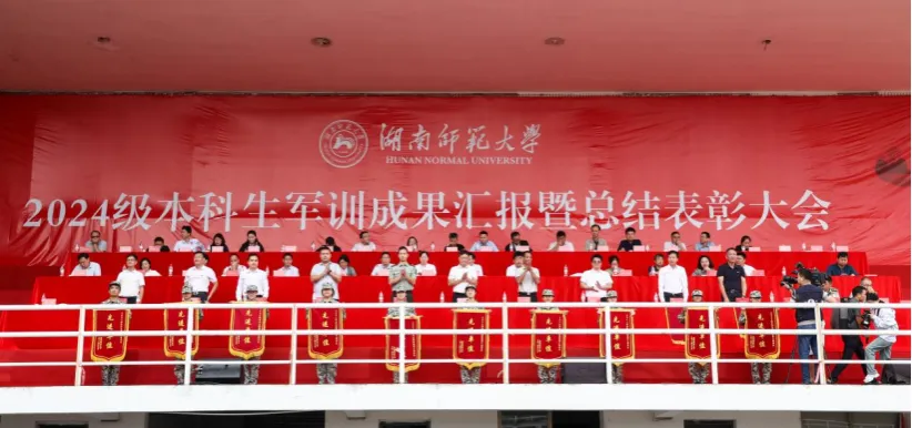 9月22日上午,我校2024级本科生军训成果汇报暨总结表彰大会在二里半校区田径场举行。来自22个学院的方阵军容严整,接受检阅。校党委委员、副校长、校国防教育工作领导小组副组长王辉,省教育厅体育卫生与艺术教育处、岳麓区人民武装部领导,学校各职能部门负责人,校国防教育工作领导小组成员及各学院负责人一同检阅了2024级本科生军训成果。大会由学生工作部(处)、武装部副部长,军训团政委彭露主持。