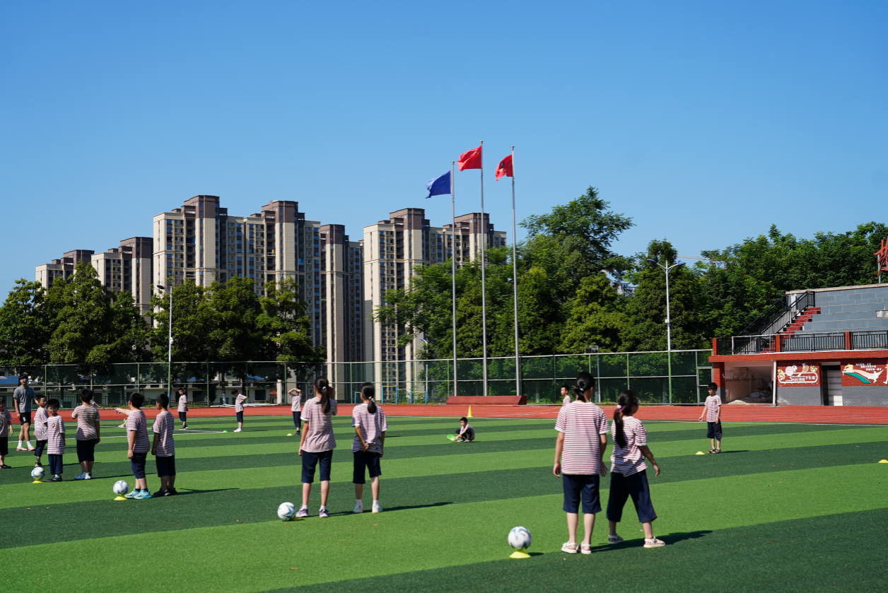 足球教学现场,实践团成员发挥专业优势,从足球控球、传球基础技巧到团队战术配合,进行细致讲解与示范。针对不同年龄段学生特点,设计趣味足球游戏,如带球绕桩接力赛、小组对抗积分赛等。在游戏中,学生们热情高涨,追逐足球、相互协作,尽情感受足球运动魅力,激发对足球的浓厚兴趣。