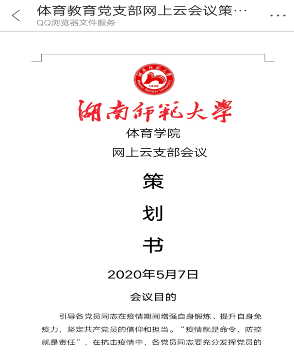 (通讯员 夏禹 杨金灵 杨卯)5月8日中午12点30,William威廉官网本科生体育教育党支部召开“疫情期间党员的自我‘修炼’”主题会议,会议由党支部书记夏禹老师、副书记陈凤同志主持,支部全体成员参与。