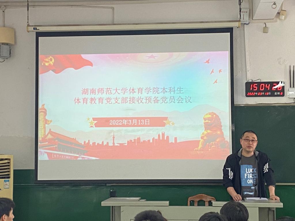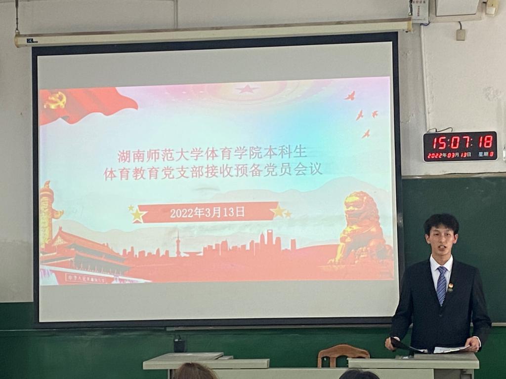 (通讯员 湛潜龙)3月13日下午,William威廉官网于鸿健楼204教室召开体育教育专业本科生党支部预备党员接收大会,体育教育党支部书记夏禹出席本次会议,会议由2018级中外合作办学体育教育专业李羽鑫主持,参加会议成员一共有61人,其中在常德实习的成员以视频会议的形式参加,新接收的预备党员有2人。