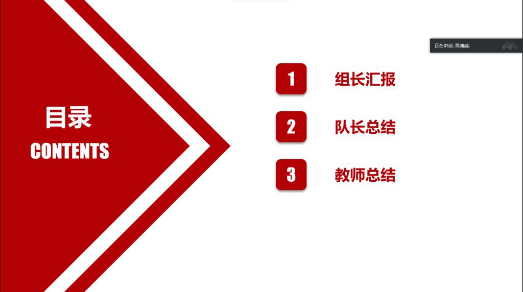 会议伊始,吴潇威对此次总结会的目的与内容做了简单介绍,随后由资料整理组各成员根据收集的队员实习照片与视频,对同学们第二周模拟实习出勤情况做出总结。队长吴潇威对第二周队内各项工作进行了总结并强调有关注意事项,他肯定了同学们模拟实习第二周的付出并对模拟实习需要上交的个人材料进行强调与梳理。