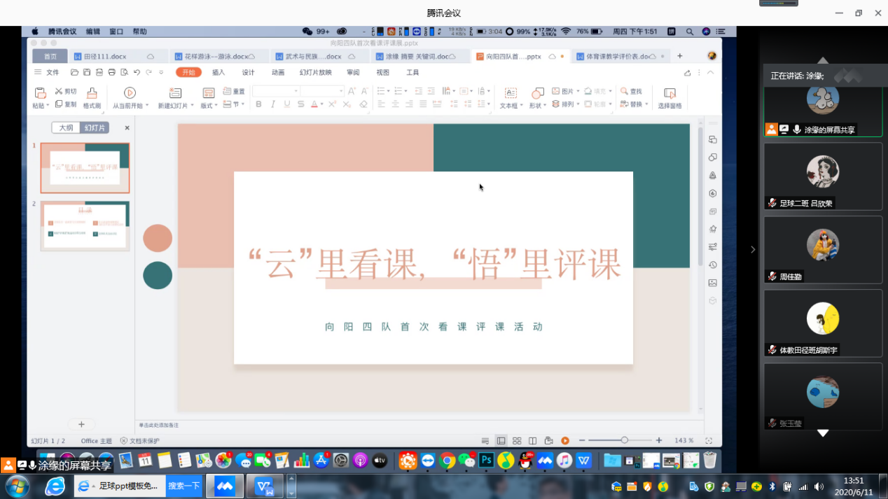 (通讯员 匡梨飞 吕欣荣 张玉莹)6月11日下午13:00,向阳四队全体队员在腾讯会议开展了首次线上看课、评课活动。
