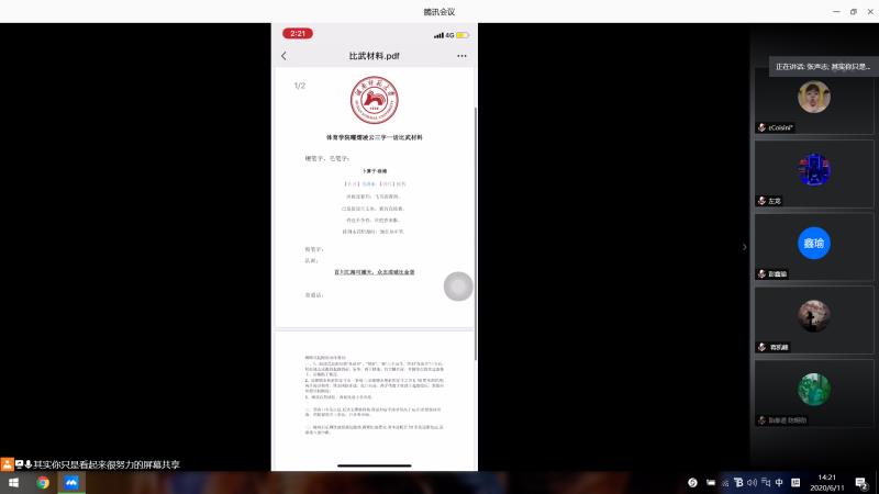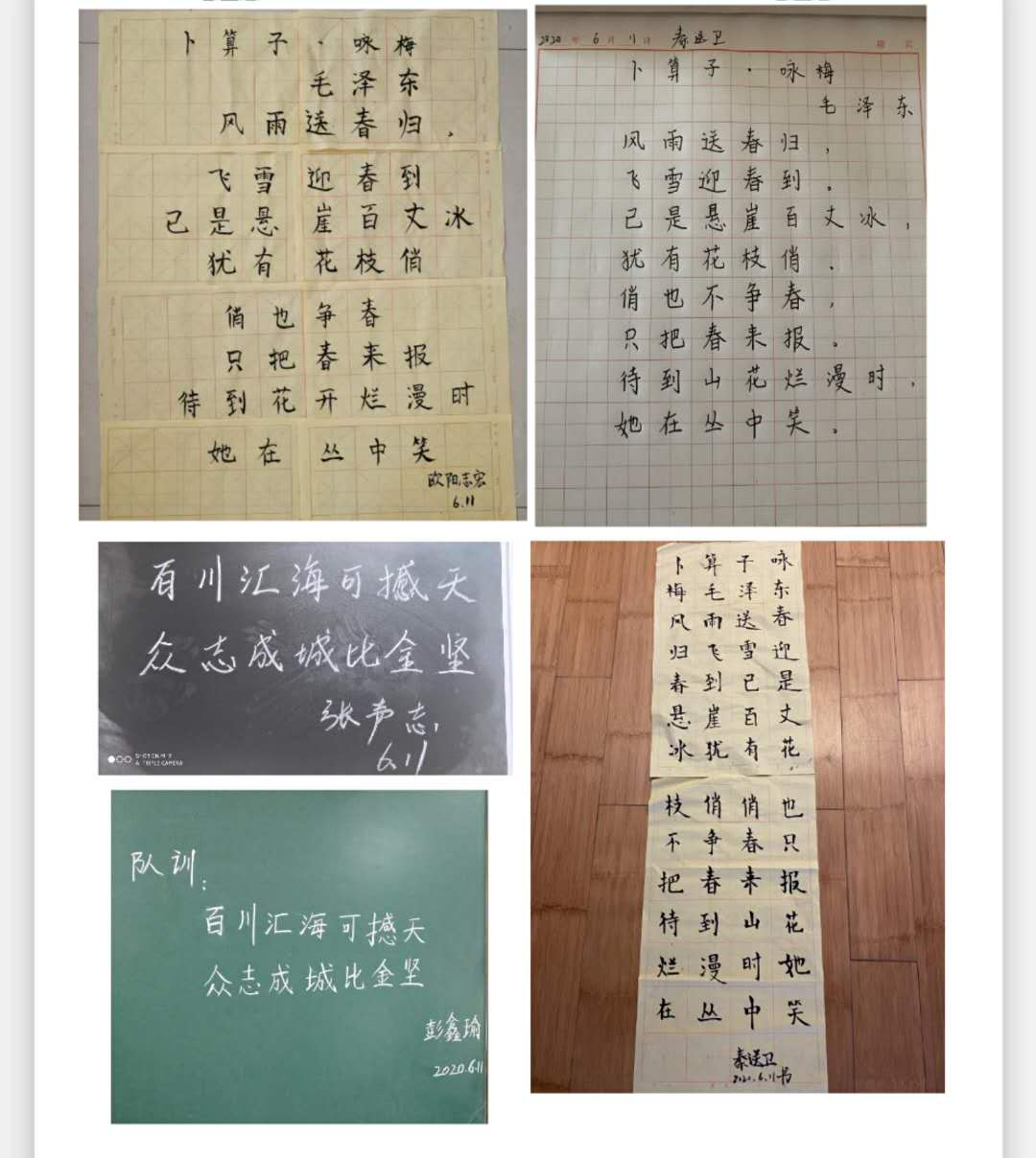 (通讯员 欧阳志宏 )2020年6月11日下午两点半,William威廉官网21017级曜熠凌云实习队进行了一场“三字一话”的线上比武。比赛内容为粉笔字、毛笔字、硬笔字以及普通话,参赛队员为全体队员,匡梨飞指导老师和上官戎指导老师作为本次比武的评委参加此次活动。