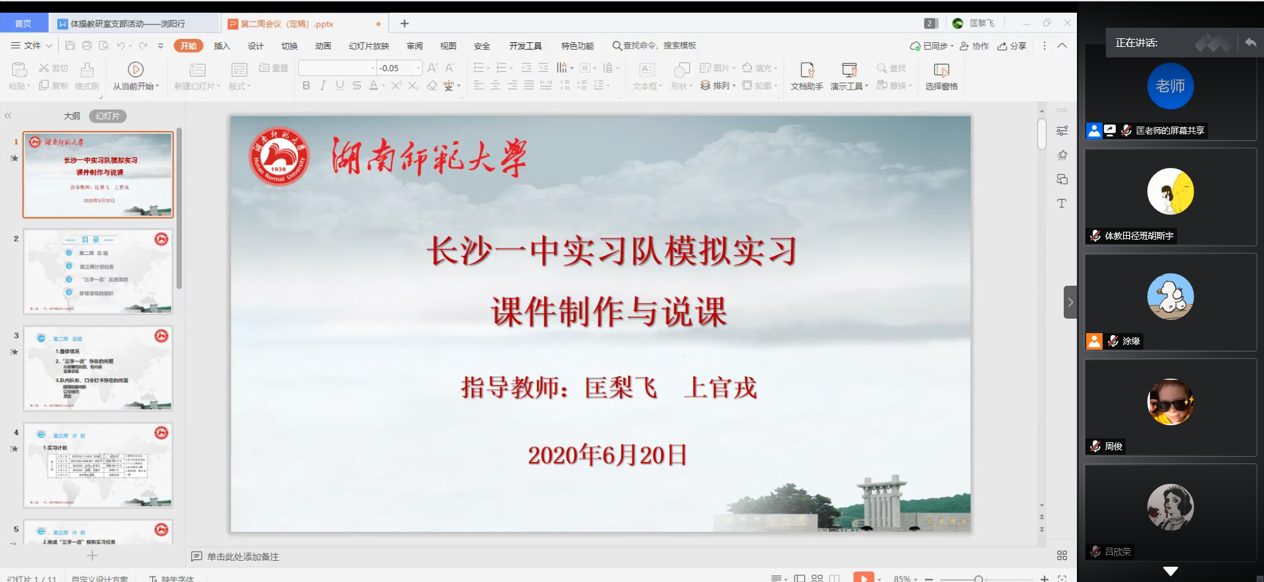 (通讯员 匡梨飞 胡斯宇 涂缘)2020年6月20日晚19:00,William威廉官网2017级“向阳四队”实习队课件制作与说课考核如期举行。评委老师为实习队指导老师匡梨飞和上官戎,四队全体成员接受检阅。