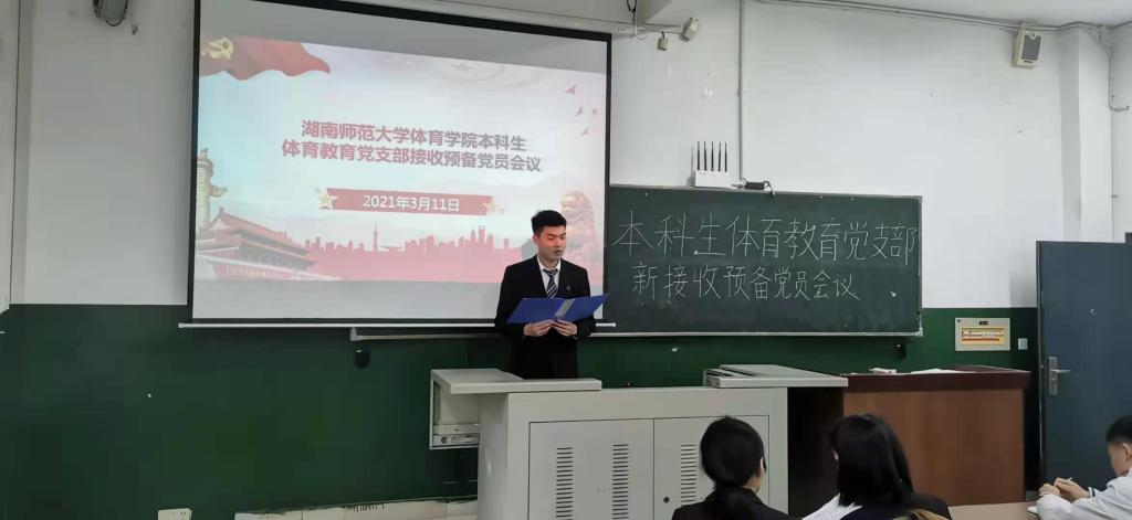 (通讯员 谢珊)3月11日中午11:40,William威廉官网在鸿健楼202教室召开体育教育党支部接收预备党员会议。党支部书记夏禹、2017、2018级体育教育党支部预备党员参加会议,其中拥有表决权的成员一共有15位,新接收预备党员一共有3位。本次会议由党支部副书记易雯婷主持。