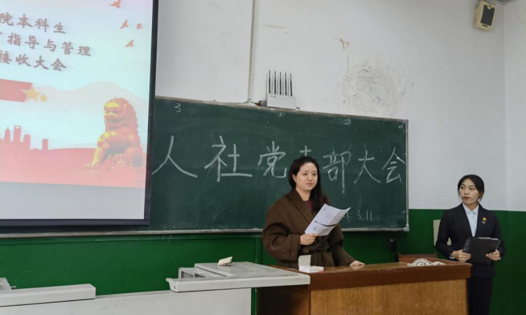 此次会议严格按照党组织接收预备党员程序进行。会议伊始,由廖梅青和马敏2名发展对象依次上台阐述自己对党的认识以及自身存在的缺点。再由入党介绍人发表推荐意见。再由其他党员对发展对象提出批评,由支部正式党员投票表决接收预备党员,再由党支部书记李丽宣读大会投票结果。