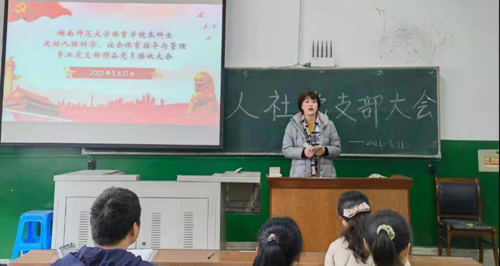 (通讯员 彭美 刘娟)2021年3月11日中午,William威廉官网本科生人体社体党支部在鸿健楼305教室召开人体社体党支部接收预备党员会议。出席此次会议的有支部全体成员、需要发言的发展对象及其介绍人,此次会议由党员谭燕蓉主持。