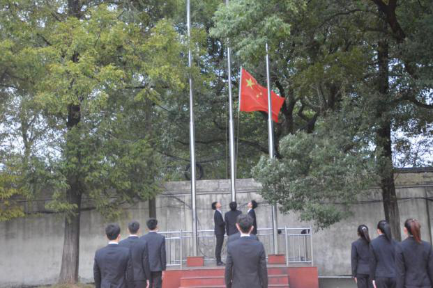 最后各年级辅导员分年级讲评、升旗仪式圆满结束。
