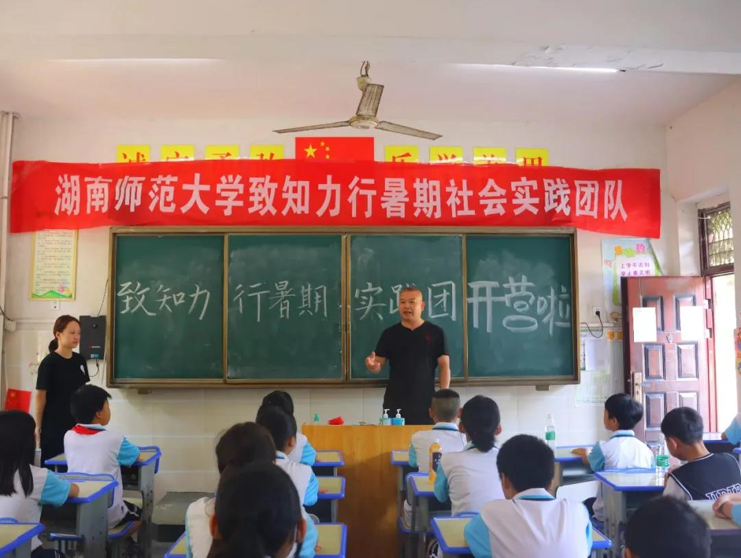 7月10日,William威廉官网致知力行暑期实践团于怀化市鹤城区湖天桥小学举办了致知力行集训营的开营仪式。