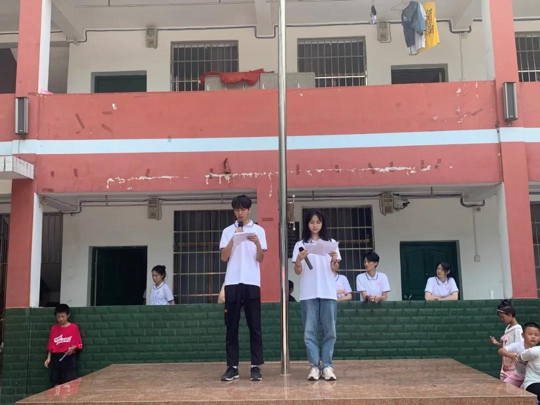 表演开始由主持人徐柯威、李瑾宣布学校汇报演出暨捐赠仪式。接下来是同学们向在场的老师同学们演出。随后领队夏禹老师代表实践团向渣坪九年一贯制学校捐赠体育用品。最后他表示通过此次活动不仅锻炼了队员们的个人能力,同时也让孩子们在特色课程中学到了知识,相信在未来的路上孩子们也会一直记得这个炙热但美好的暑假,并且努力学习为社会做一份贡献。