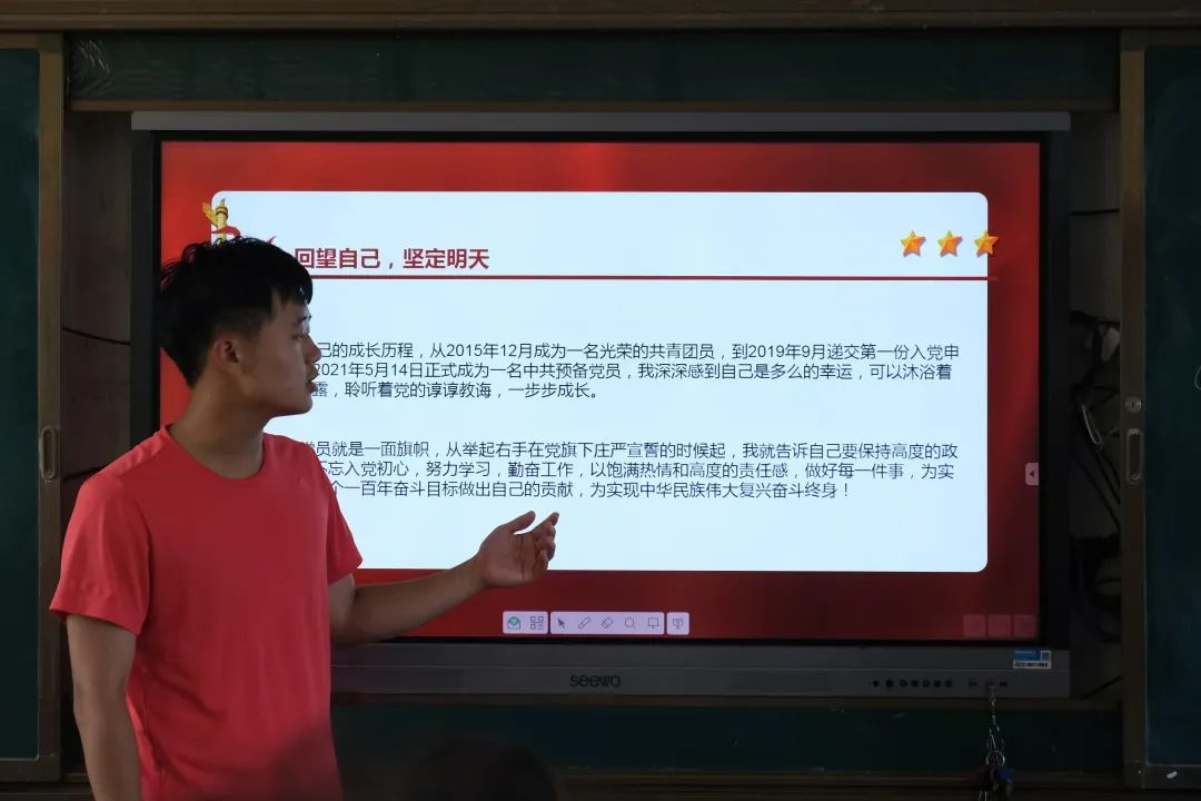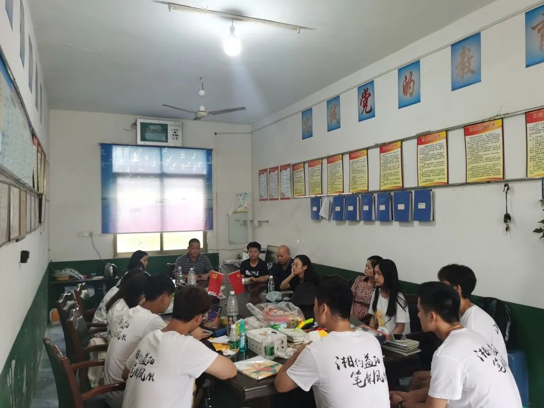 “湘约益阳,笔架凤凰”三下乡团队与凤凰湖学校校方进行红色论坛活动。预备党员范一凡同志向团队成员介绍党的光辉历程并且反省当下展望明天。老党员李立峰同志与温辉同志进行讲话。