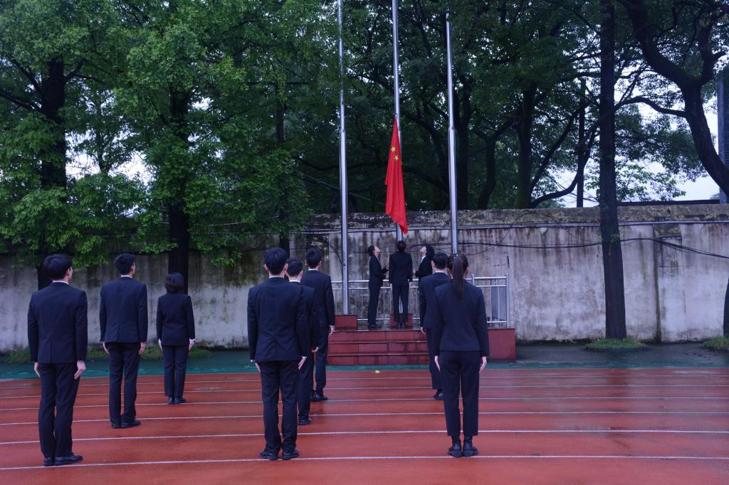 学生代表薛思程作国旗下演讲,围绕长沙自建房倒塌事故,强调同学们要敬畏生命,掌握安全知识。不要忽视自身安全问题,提高自我防范意识。