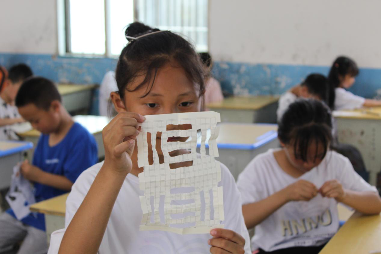 在队员们简单地向孩子们介绍了剪纸的技巧和注意事项后,孩子们便开始了自己的创造。对齐、折叠、按压......相同的纸,在孩子们丰富的想象力之下,变成了一幅幅各具特色的作品。看着自己亲手制作的作品,孩子们相互展示,乐在其中,分享着自己的创作成果,整个教室充满了欢笑、洋溢着快乐。