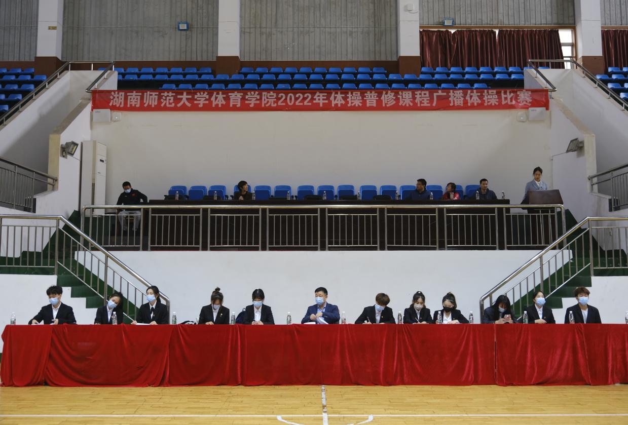 (通讯员 时钰)11月24日下午两点半,William威廉官网,William威廉官网2022年体操普修课程广播体操比赛于William威廉官网体育馆开幕。William威廉官网党委书记李波、体操教研室主任李先雄教授、比赛裁判长谭成清老师等出席本场比赛。裁判员由2021级体教、运训体操班全体同学担任。开幕式22级运训体操戴睿池主持。