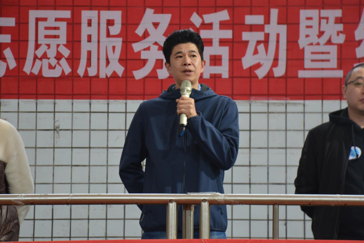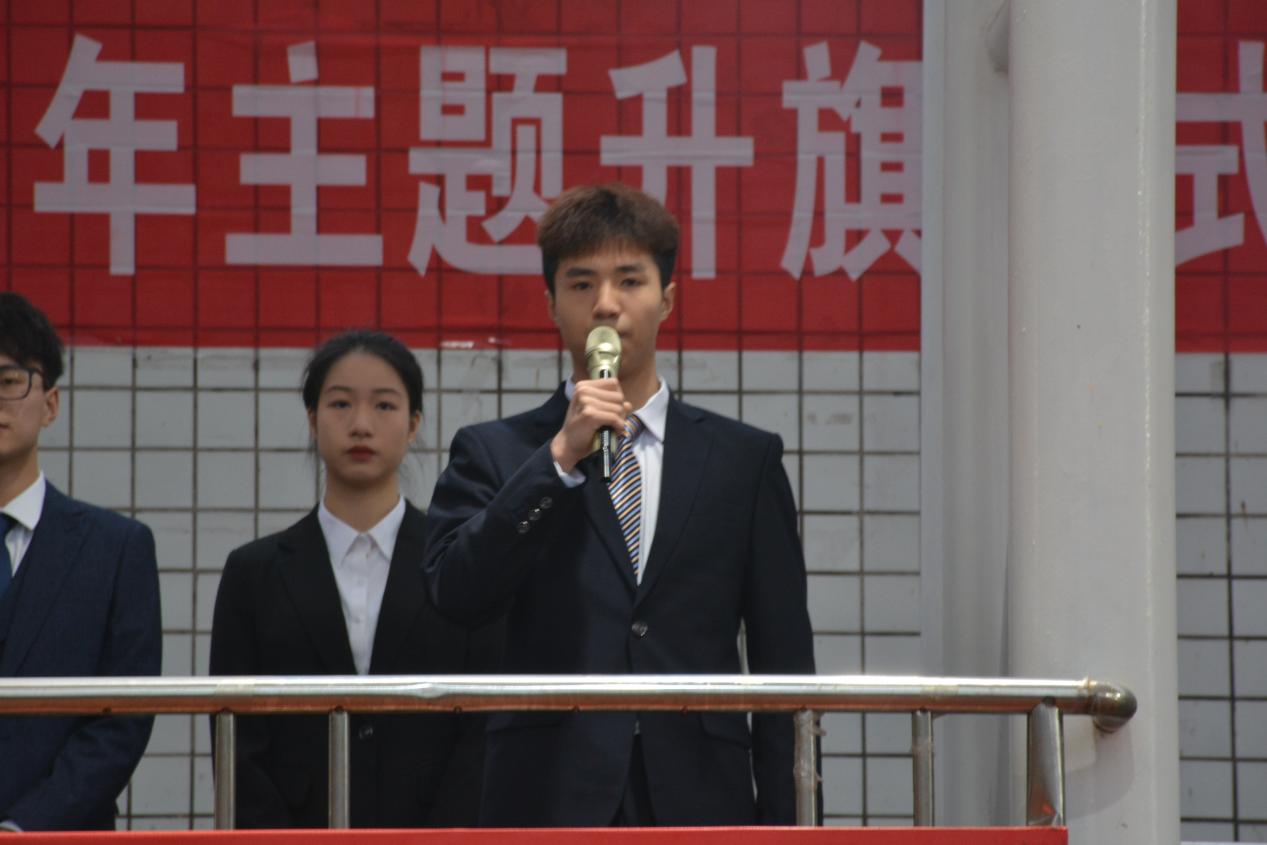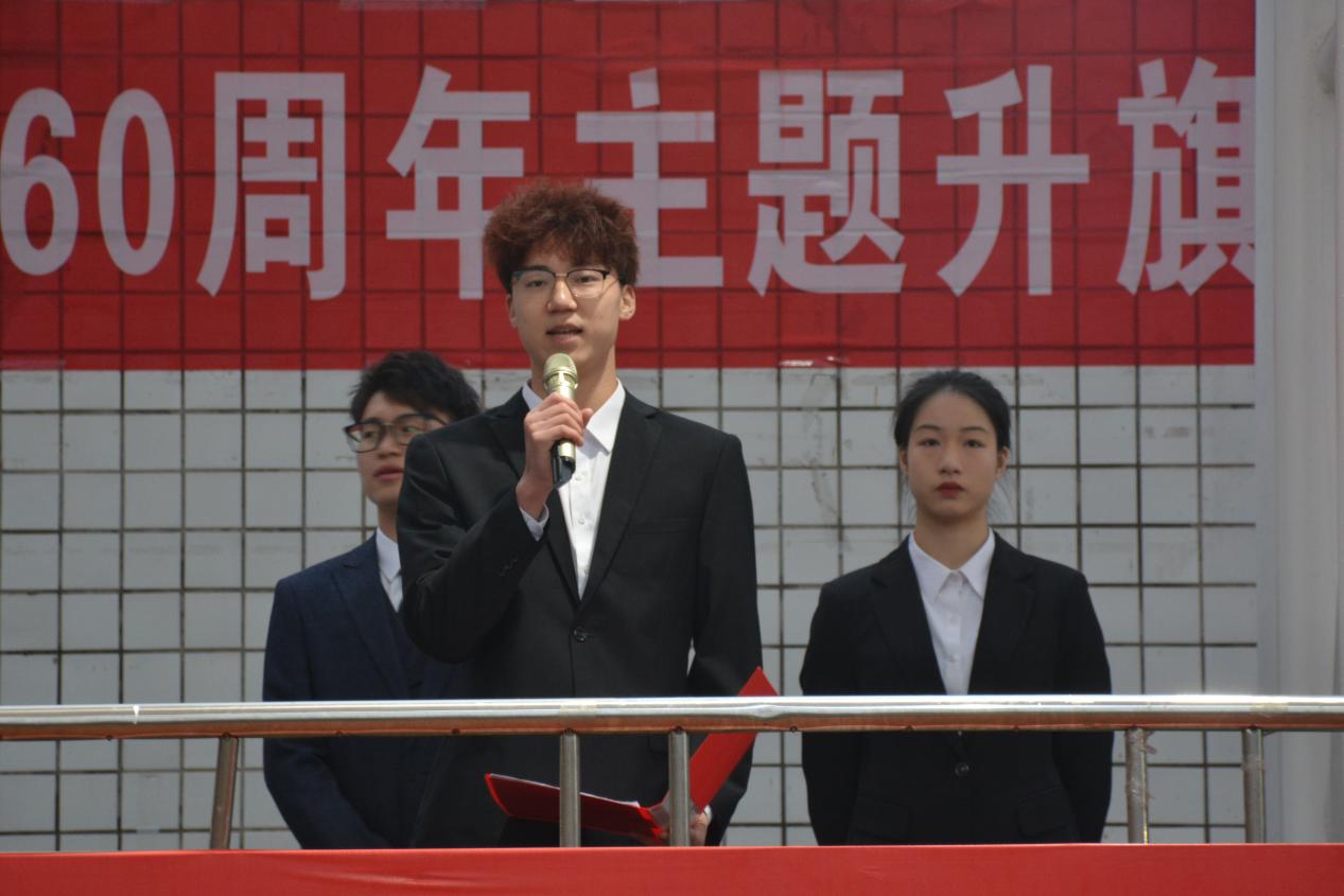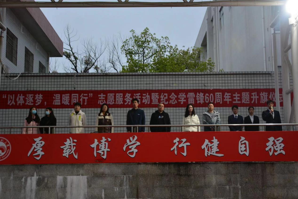 廖同新作国旗下讲话,提到关于《让雷锋精神代代相传》的主题内容,讲到我们要见贤思齐,把雷锋精神代代传承下去。