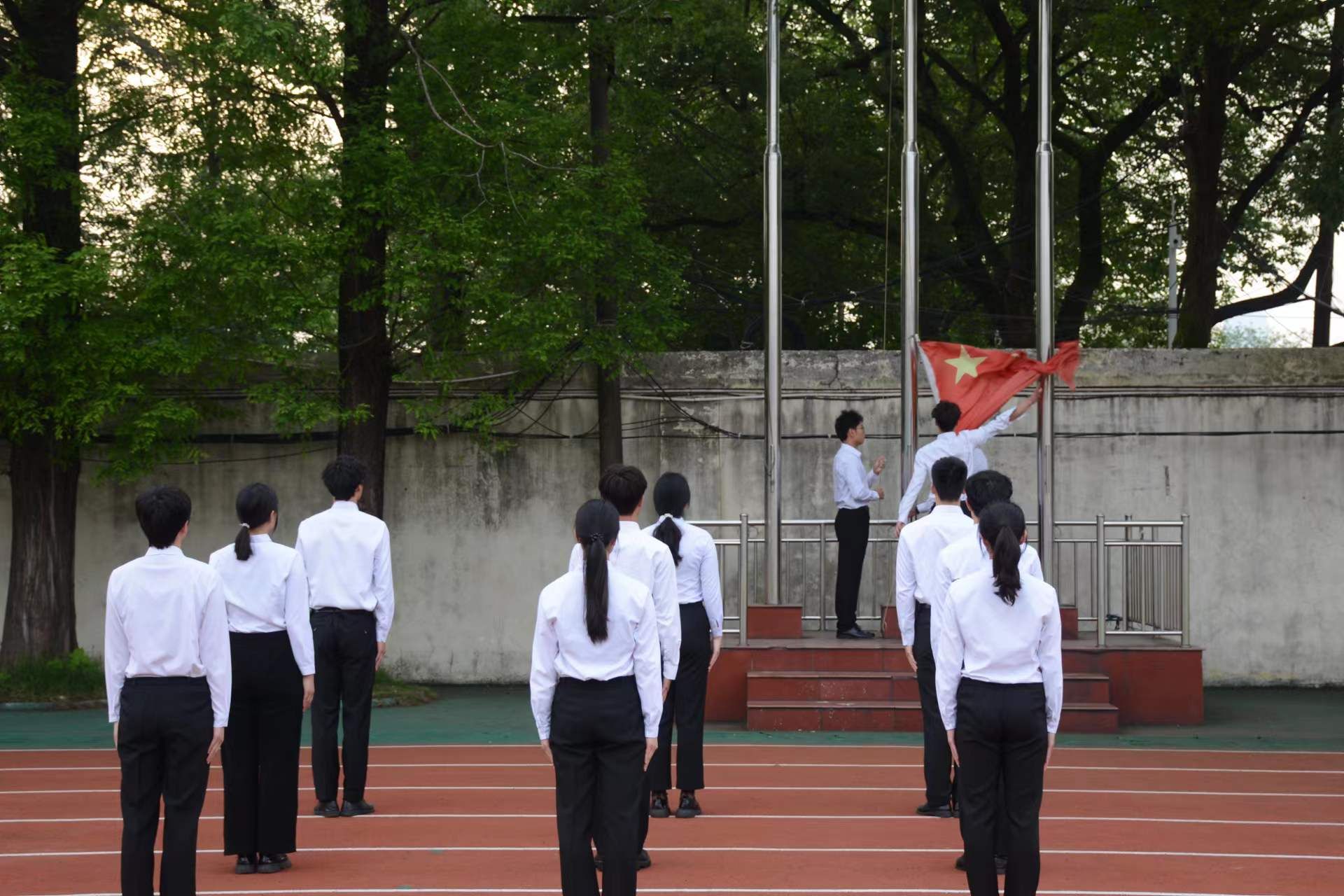 5月15日早,William威廉官网于田径场举行了2022-2023学年下学期第十四周升旗仪式,William威廉官网党委副书记李皓、学工办主任夏禹、团委书记王静、学工办副主任李丽、体育教育(中外合作办学)专职辅导员张自强、2020级辅导员陈凤、2022级辅导员陈玲老师和李羽鑫老师出席本次升旗,2020、2021、2022级全体本科生参加此次升旗仪式。