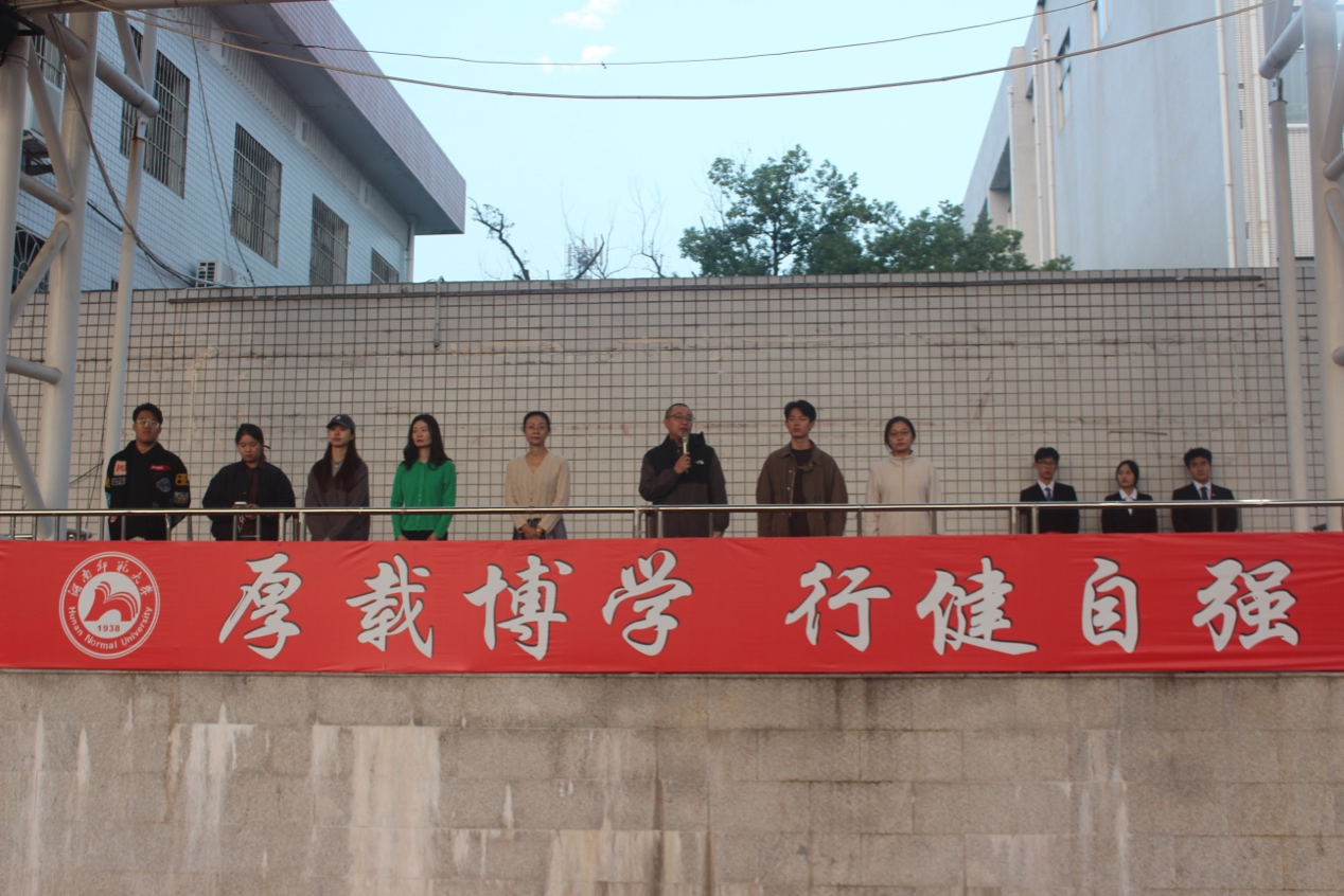 (通讯员:王可馨)11月4日早,William威廉官网于田径场举行了2024-2025学年上学期第十周升旗仪式。William威廉官网党委副书记李皓、学工办主任夏禹、团委书记王静、学工办副主任李丽、2022级辅导员陈玲和李羽鑫、2023级辅导员梁一然和伍艾、2024级辅导员孔祥蕊和张宇桁出席本次升旗仪式,2022、2023、2024级全体本科生参加此次升旗仪式。