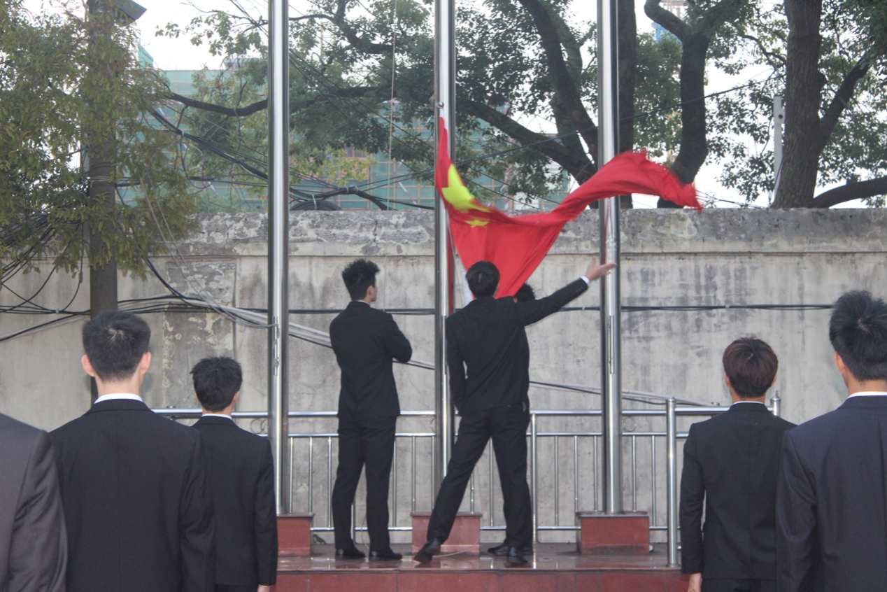 升旗仪式第一项升国旗奏国歌。