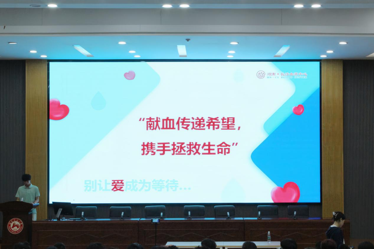 长沙血液中心谢玉斌主任在无偿献血知识宣讲环节中,详细介绍了血站的相关信息以及《中华人民共和国献血法》的要点。谢主任介绍了长沙的用血与献血情况,并解答了学生们关于献血的常见疑问。