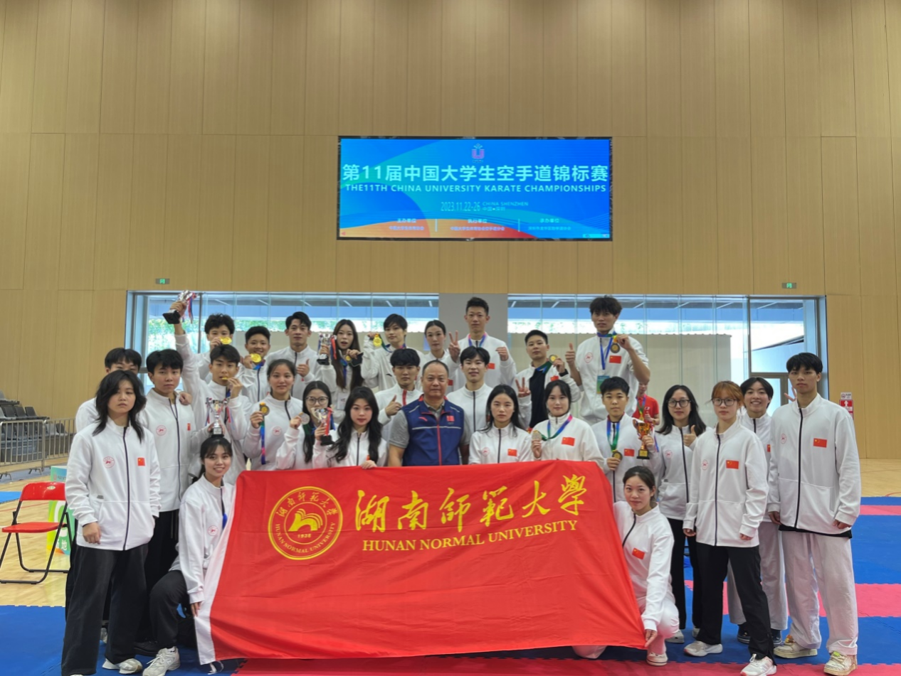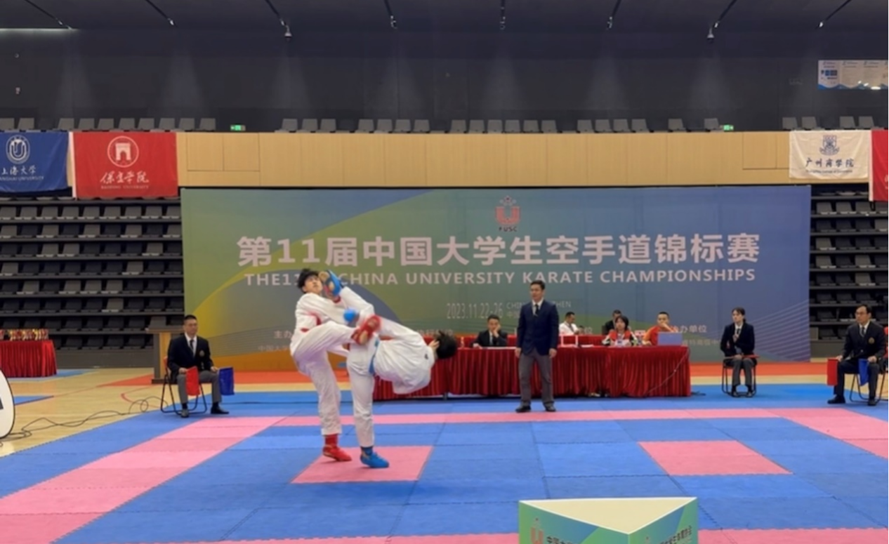 11月24日至26日,第11届中国大学生空手道锦标赛在广东深圳举行,我校学子在比赛中共斩获7金9银17铜,并荣获体育道德风尚奖。我校副校长刘怀德到比赛现场看望慰问了参赛师生。