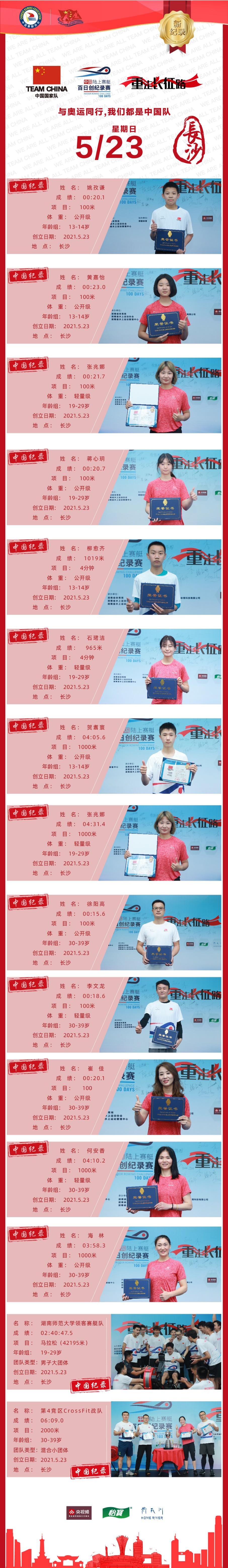 在随后举行的2021中国陆上赛艇重走长征路百日创纪录赛·长沙站赛事中,我校领客赛艇队取得了多项团体及个人全国纪录。此次比赛由国家体育总局体育器材装备中心、中国赛艇协会、中国皮划艇协会主办,由湖南省体育局、湖南省水上运动协会、湖南省水上运动管理中心承办,我校教育实践基地领客体育协办。