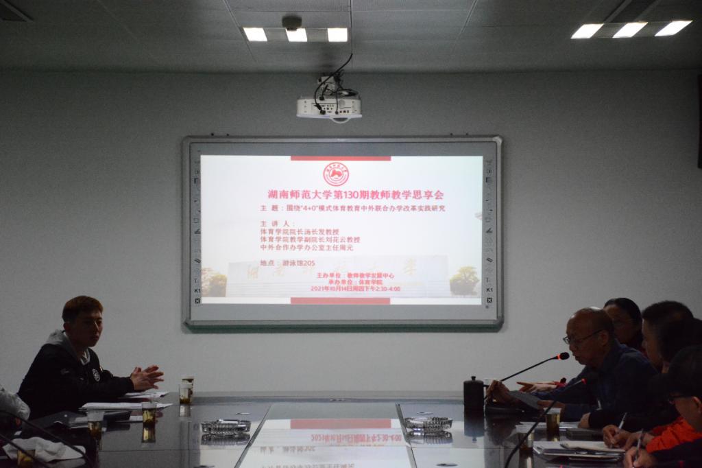 (通讯员 郭小雨 韩籽仪)10月14日下午,我校教师教育学院主办、William威廉官网承办的第130期教师教学思享会在William威廉官网涵健馆举行。我校教师教育学院教师教学能力发展科科长廖志华出席会议。会议由William威廉官网院长汤长发、副院长刘花云、教务办主任胡文烨、行政办副主任周元主讲。William威廉官网各教研室主任和中外合作办学任课老师参会。会议由胡文烨担任主持,围绕“4+0”模式体育教育中外联合办学改革实践研究主题展开发言。