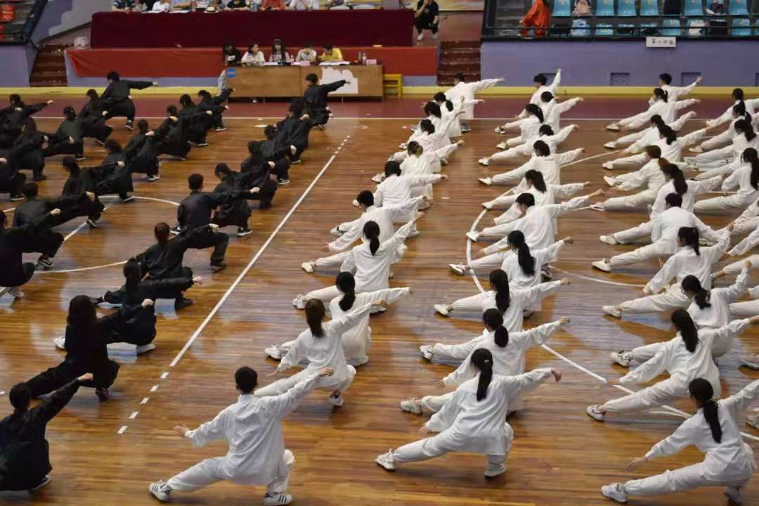 比赛在悠扬的乐曲声中拉开序幕,运动员们大展身手,为观众带来了一场壮丽的视听盛宴。他们或着黑白仪服,在太极阵图中诠释阴阳相融;或披朱点黄,在龙狮的点缀中缓缓流泻深厚文化底蕴;或红缨簪发,花式谱写太极武术的多变风格。他们的动作刚柔并济,走势行云流水,队形整齐划一,尽显太极筋骨。