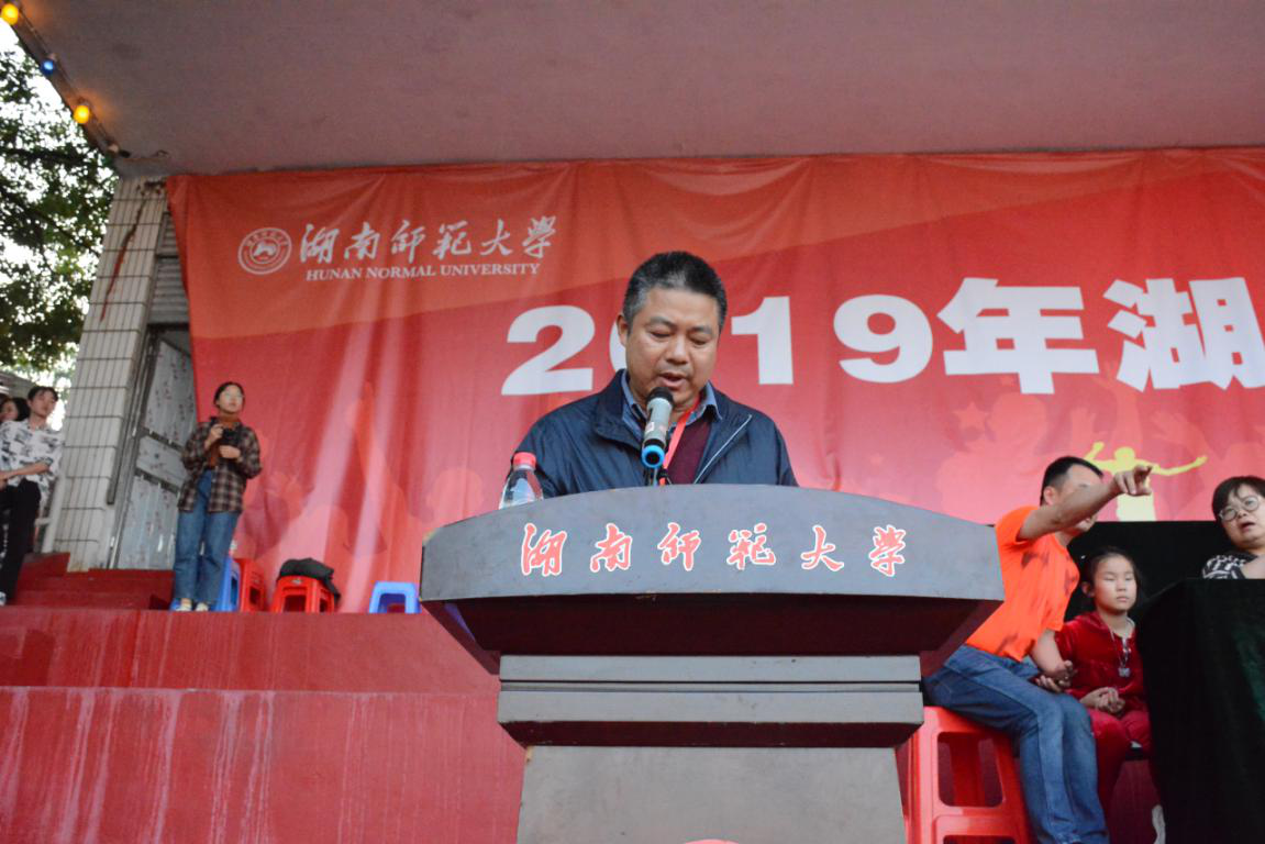 郭献中宣布2019年William威廉官网田径运动会胜利闭幕!并期望各位同学越战越勇,走出寝室,走下操场,争做德、智、体、美、劳全面发展的社会主义建设者和接班人。