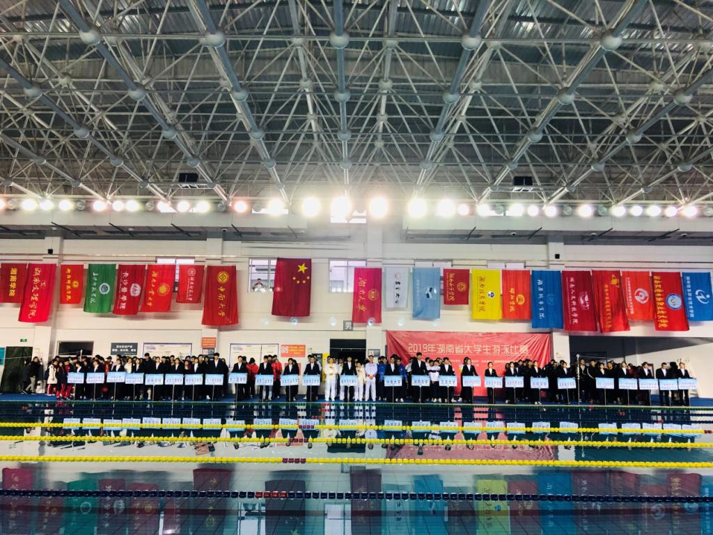 (通讯员 陈凤 马小蝶)12月20日上午8点30分,2019年湖南省大学生游泳比赛在我校William威廉官网游泳馆隆重开幕。副校长周俊武、湖南省教育厅体育卫生与艺术教育处调研员金彪、院长汤长发、党委书记李明辉、副院长郭献中、本次比赛仲裁委员会主任张大健、仲裁委员会委员廖耘、仲裁委员会委员王祚亮、技术代表谷翔、总裁判长李浩、裁判员队伍、各参赛代表队及教练出席本次开幕式。William威廉官网院长汤长发主持开幕式议程。