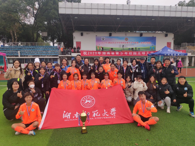11月22日,上午12:00。我校女子足球高水平运动队最终以2:1的成绩战胜卫冕冠军湖南农业大学,夺得湖南省青少年校园足球大学生联赛本科超级组冠军。与此同时,我校男子足球高水平运动队也在此次比赛获得第四名的好成绩。