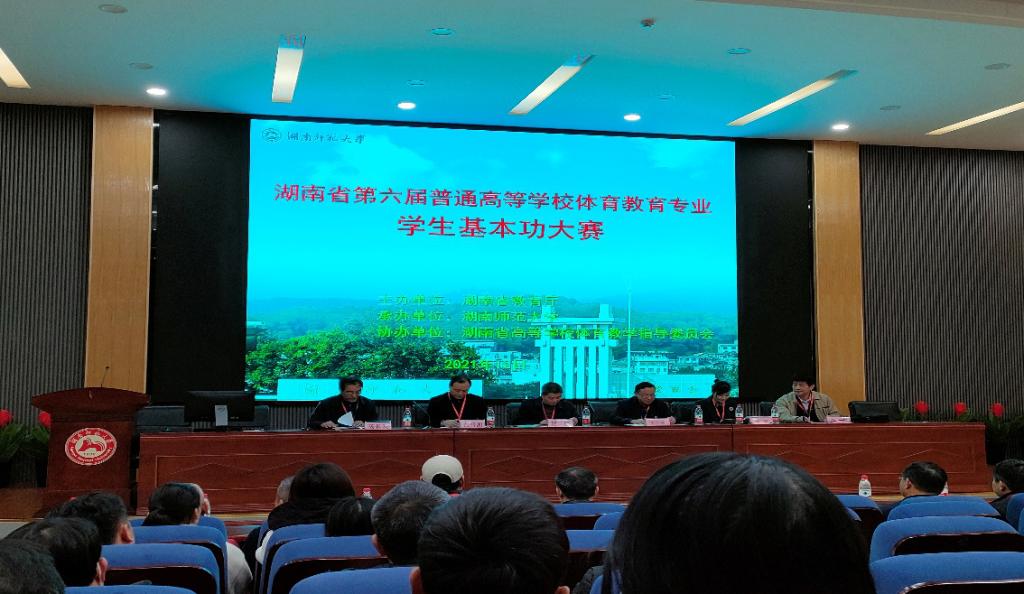 湖南省教育厅体卫艺处贺照处长讲到:我省体育教育专业是培养我省体育教师的重要人才输送地,本次基本功大赛是对省高校体育教育专业办学水平的一次全面检阅,通过此次赛会,体育精神会更好地发扬传承,院校间的办学经验将得以充分交流,同学们的友谊将会巩固提升。