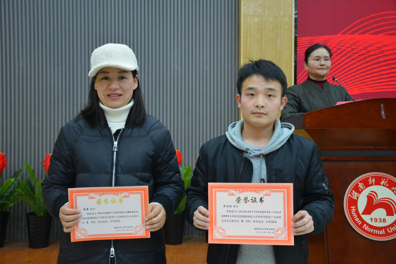 杨明教授报告的主题为“我国体育用品对外贸易企业发展现状研究--基于天生国际化企业视角”;李秋芳(博士研究生,导师:郑澜教授)报告的主题为“有氧/无氧运动对果蝇心脏功能和睡眠活动行为的影响”;张强峰副教授报告的主题为“致青春:《国家学生体质健康标准》上报数据抽查复核的十年回顾与展望”;刘艳(硕士研究生,导师:雷军蓉教授)报告的主题为“新时代民俗体育服务健康中国的内在逻辑研究”;陆晓洲老师报告的主题为“三种力量训练方法对短跑运动员起跑加速时下肢关节力学、刚度和运动学的影响”;孙晨晨(博士研究生,导师:汤长发教授)报告的主题为“基于斑马鱼模型探究运动对肌组织及慢病的干预机制”;马文友教授报告的主题为“从传统走向现代:中国武术审美文化的转型、成因及当代启示”;杨壮壮(硕士研究生,导师:布特教授)报告的主题为“1986-2020我国体育人类学研究热点与演化趋势--基于CiteSpaceV的可视化分析”。