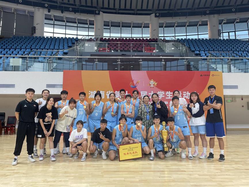 在领队刘花云副院长的带领下,教练唐万科老师、杨小波老师的训练教导下,我校男篮代表队于9月15日前往岳阳市湖南理工学院参加湖南省第十二届大学生运动会篮球项目大学男子组篮球比赛。在接下来的五天,代表队披荆斩棘,以小组第二的成绩进入半决赛。总结失败原因后,代表队全力以赴,勇敢拼搏,最终获得了湖南省第十二届大学生运动会篮球大学男子组亚军的优异成绩,并且获得了“优秀代表队”的称号。同时,唐万科老师获得“优秀教练员”,队员彭爽、薛金昆、朱鹏宇获得了“优秀运动员”的称号。