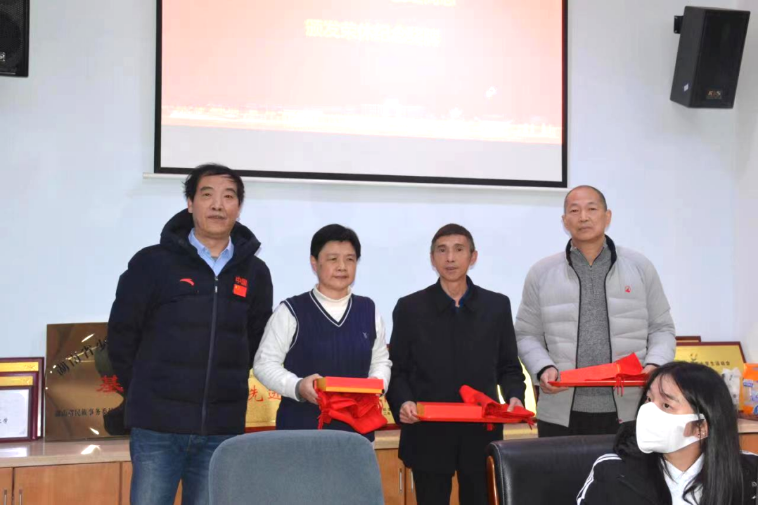 汤长发院长为李明辉、范武平、卓漫红同志颁发纪念奖牌。