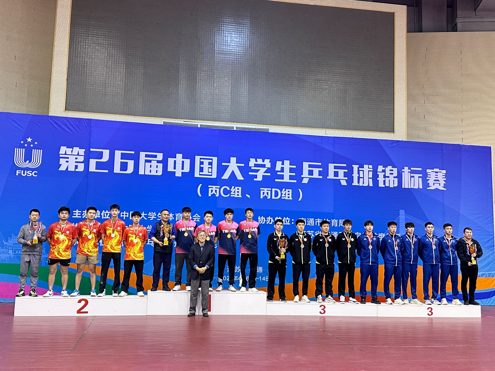 4月15日,由中国大学生体育协会主办,中国大学生体育协会乒乓球分会执行,中国乒乓球通州训练基地承办的第26届中国大学生乒乓球锦标赛(丙C组、丙D组)在江苏南通中国乒乓球通州训练基地圆满落幕。经过7天的激烈争夺,我校乒乓球队获得男子团体第二名,男子单打、男子双打、混合双打第五名的佳绩。