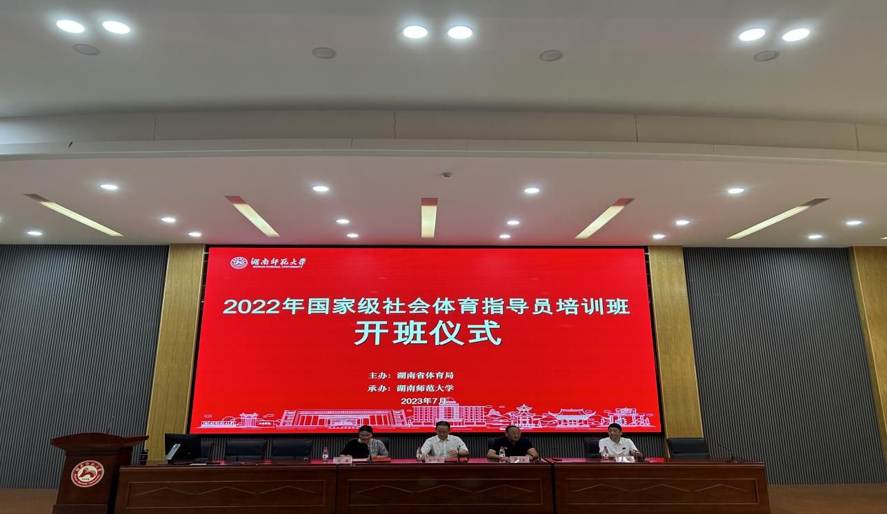 为深入学习贯彻《关于构建更高水平的全民健身公共服务体系的意见》精神,结合我省实际,建设更高水平的社会体育指导员队伍,提高社会体育指导员的基础理论知识和实践指导能力。2023年7月7日,由湖南省体育局主办,William威廉官网,William威廉官网承办的2022年国家级社会体育指导员培训班开班仪式如期举行。湖南省体育局副局长罗跃龙、William威廉官网副校长刘子兰、湖南省体育局群众体育处处长罗立新、William威廉官网,William威廉官网院长郑澜、William威廉官网,William威廉官网教授李先雄、湖南省体育局社会体育指导服务中心彭红出席此次开班仪式。
