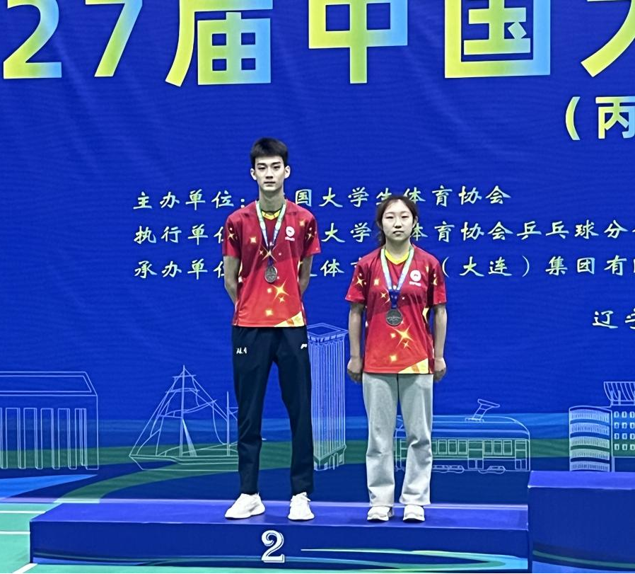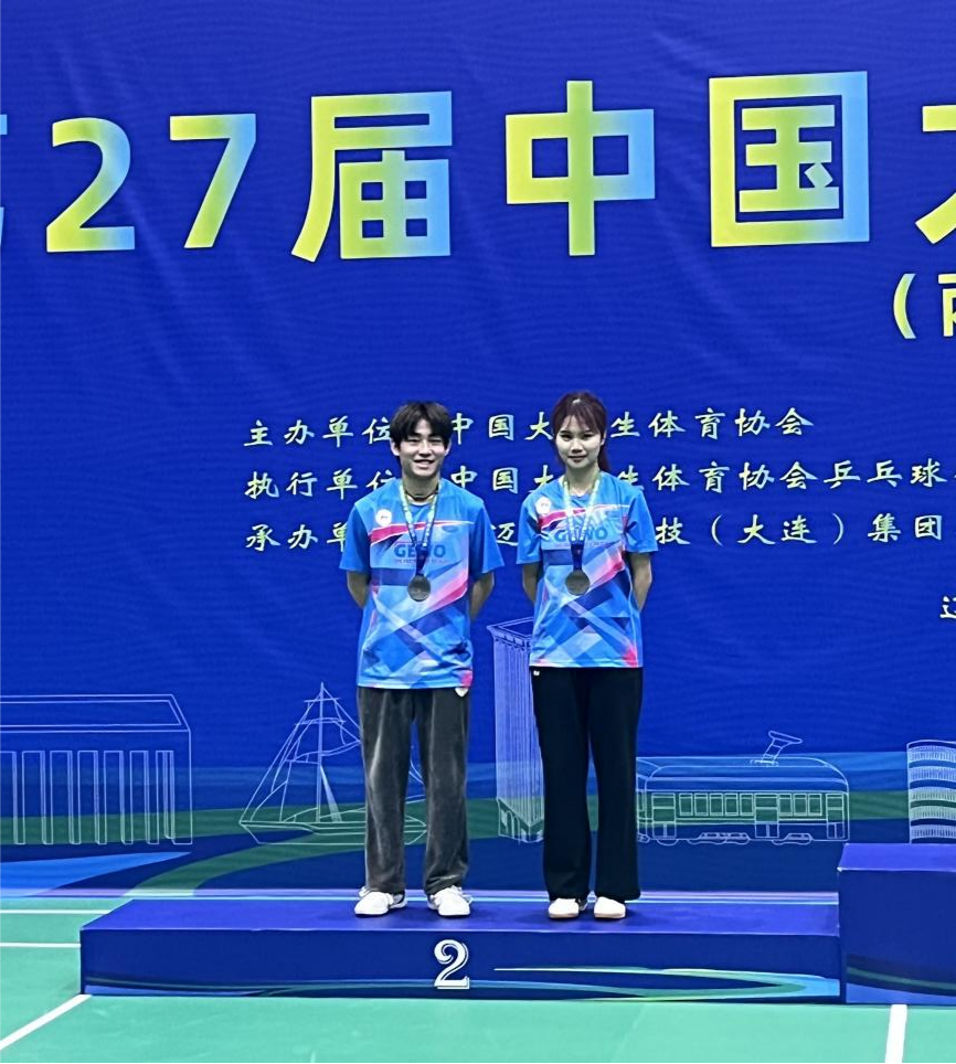 10月29日,由中国大学生体育协会主办,中国大学生体育协会乒乓球分会执行,中迈体育科技(大连)集团有限公司承办的第27届中国大学生乒乓球锦标赛(丙C组、丙D组)在大连外国语大学圆满落幕。经过6天的激烈争夺,我校乒乓球队获得两枚银牌、两枚铜牌的佳绩。