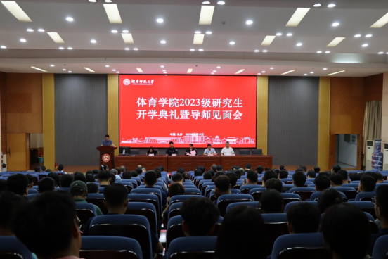 新生代表2023级研究生杨雅茜发言,提出新时代的研究生们应当致力于做到以下三点:一是明确目标,锲而不舍。要提前规划,在导师的认真指引下完成科研任务,以“咬定青山不放松”的韧劲,不达目的不放弃。二是夯实基础,增长知识。要有批判性思维,勇于质疑,敢于思辨,跨学科组合体育新论。三是勇往直前,坚守初心。成为新时代“复合型、创新型、高素质、国际化”的体育人才,投身我国体育事业发展的时代浪潮。