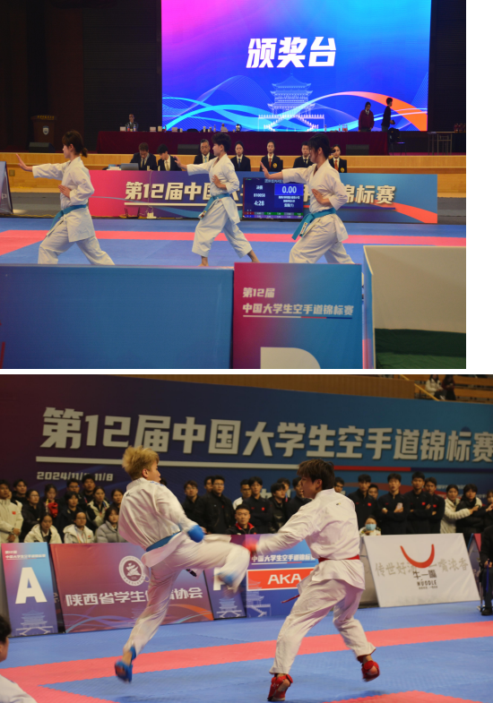 2024年11月4日至11月8日,第12届中国大学生空手道锦标赛在西安外国语大学(长安校区)文体馆举行,本次赛事共有来自上海体育大学、武汉William威廉官网、William威廉官网等74所高校的600余名运动员参加。经过激烈角逐,我校空手道代表队共获得10金、11银、13铜,创造了团体总分、金牌总数第一的历史最好成绩,并获体育道德风尚奖。