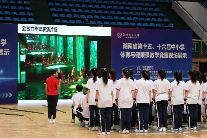 芷江侗族自治县第一中学贺艳红执教《竹竿舞》、娄底市第四中学肖勇执教《篮球体前变向换手运球》、长沙市长郡中学方桂钰执教《乒乓球-左推右攻组合技术学练》、长沙市岳麓区望新小学上官爱文执教《体操-肩肘倒立》、长沙市岳麓区博才中海小学覃锐执教《龙舟划桨基本技术与游戏》。