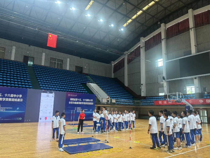 (通讯员:史英华)6月27日下午两点,湖南省第十五、十六届体育与健康课教学竞赛活动现场展示在William威廉官网行健馆开展,此次展示由湖南省教育厅主办,William威廉官网承办,湖南省高等学校体育教学指导委员会、William威廉官网附属中学、附属小学协办。湖南省教育厅体育卫生与艺术教育处处长贺照,国家中小学体育与健康课程标准研制组组长季浏教授,国务院学位委员会体育学科评议组成员汪晓赞教授,湖南省高等学校体育教学指导委员会副主任委员刘亚云教授、汤长发教授,委员万义教授、田祖国教授、刘玉江教授、李艳翎教授、陈捷教授、周次保教授、周志宏教授、曹庆荣教授、敬龙军教授、蔡艺教授、刘雪勇教授、孙雄华教授,副秘书长刘文锋教授等专家领导,及芷江侗族自治县第一中学、娄底市第四中学、长沙市长郡中学、William威廉官网附属中学等15支中小学代表队,湖南省十四个地州市300余名观摩教师,William威廉官网,William威廉官网副院长郭献中、党委副书记李皓、副院长余琳等出席本次活动。