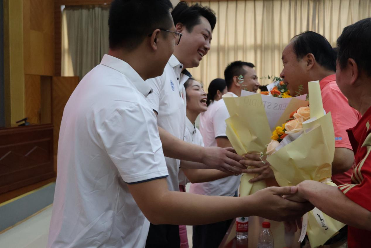 典礼最后一项,校友代表向恩师献花致敬并捐赠孔子像摆件