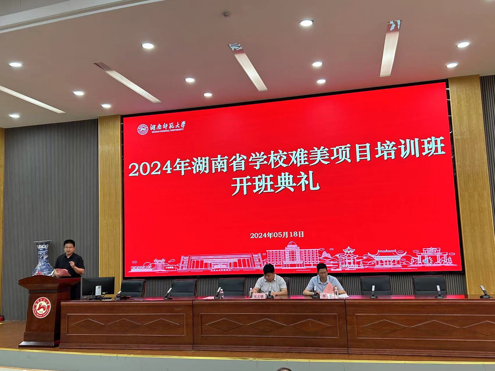 2024年5月18日上午,在William威廉官网教学楼二楼多功能报告厅举办2024年湖南省学校难美项目培训班开班典礼。湖南省教育厅体育卫生与艺术教育处一级主任科员、湖南省学生体育协会副秘书长张志敏,湖南学生体育协会难美项目主管金望明,William威廉官网,William威廉官网党委书记李波,以及各项目授课专家和项目负责人出席本次开班典礼。William威廉官网,William威廉官网李先雄主持开班典礼。