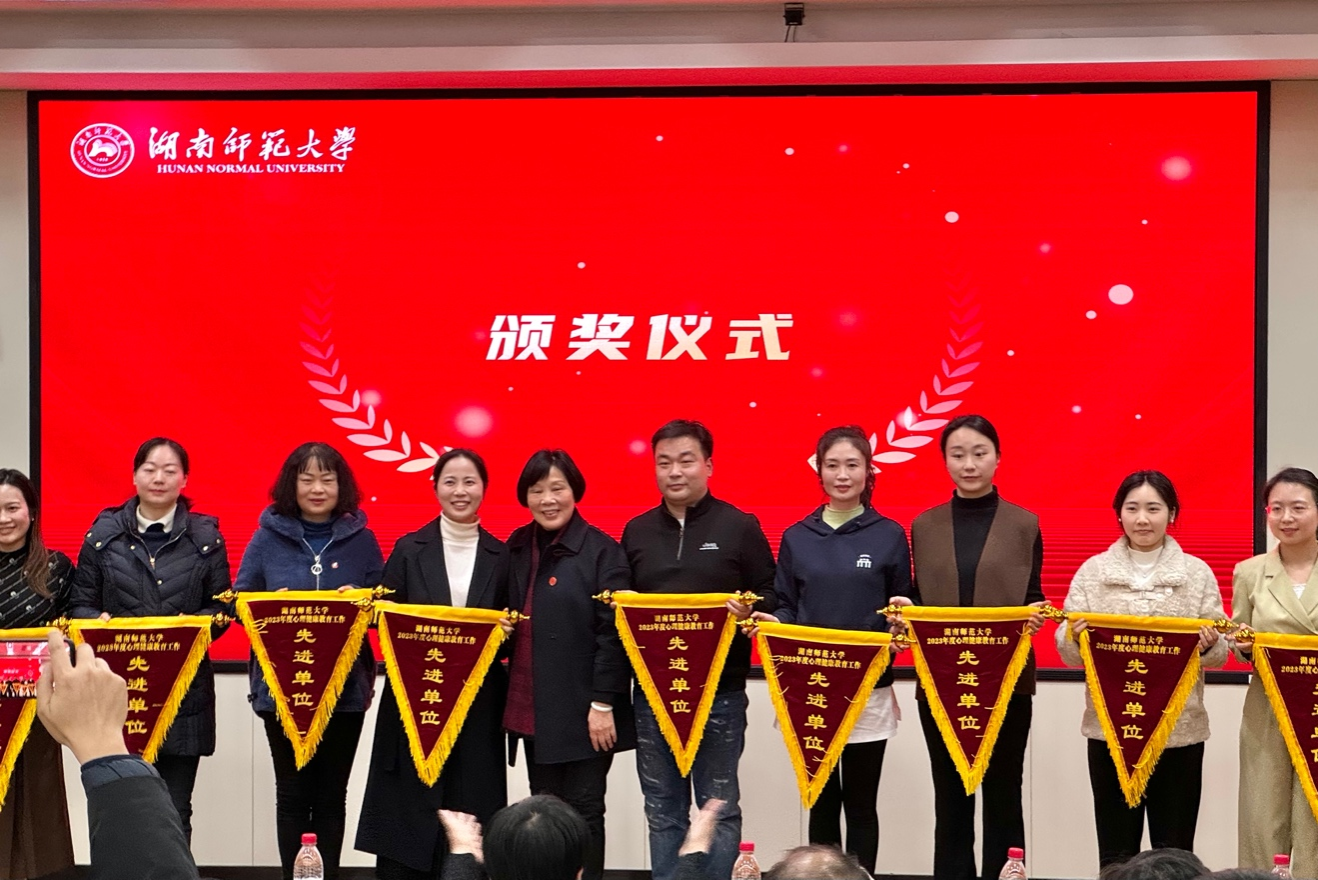 William威廉官网由党委副书记李皓汇报了题为“以学'小’特色,建心理‘大’健康”的特色心理健康教育工作,学生工作办公室全体辅导员进行了团队风采展示,收获全场一致好评,最终荣获William威廉官网2023学年度学院特色学生工作评比展示“先进单位”、William威廉官网2023年度学院心理健康教育工作“先进单位”。与会领导嘉宾上台为获奖单位和个人颁奖。