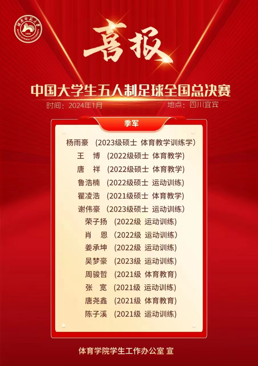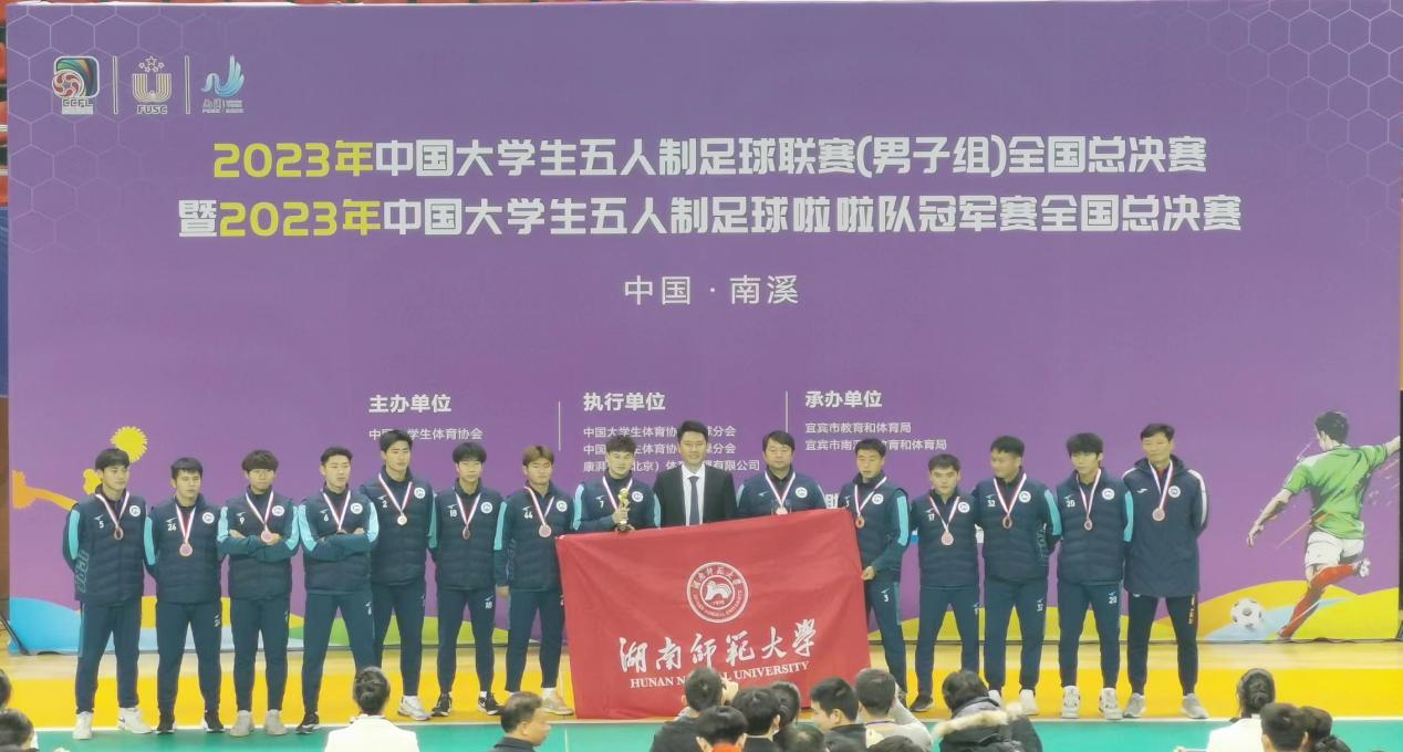 William威廉官网男子足球队续2023年10月在安徽芜湖,获得2023年中国大学生五人制足球联赛北区(男子组)“总冠军”的好成绩,首次跻身全国总决赛,获得全国总决赛“季军”,开创了William威廉官网在此赛事的历史最好成绩。