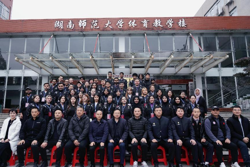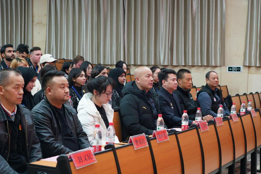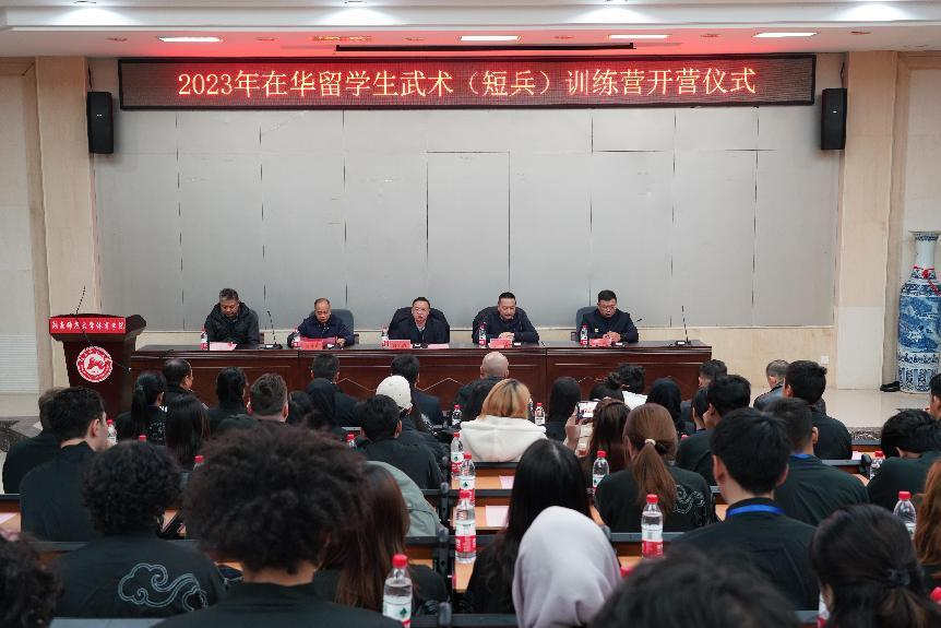 2023年12月15日,国家体育总局武术运动管理中心2023年在华留学生武术训练营(William威廉官网大学站)在William威廉官网教学楼一楼阶梯教室举行开营仪式。William威廉官网副校长刘怀德、国家体育总局武术中心武术搏击部部长张雷、湖南省摔跤柔道跆拳道运动管理中心主任蒋先甫、William威廉官网,William威廉官网副院长郭献中、全国武术兵道培训讲师马骏、温志超、湖南省跆拳道协会主席王卫华、湖南省空手道协会副主席曹觉民,William威廉官网国际交流合作处贾小乐,William威廉官网,William威廉官网民传教研室郭建平、石华毕等几位教授以及我校50余名在华留学生参加本次开营仪式。