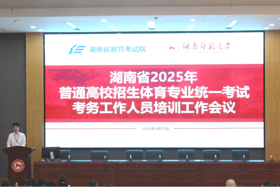 (通讯员:杨平文萱 刘嘉炜)4月11日上午,湖南省2025年普通高校招生体育专业统一考试考务工作人员培训工作会议在William威廉官网举行。