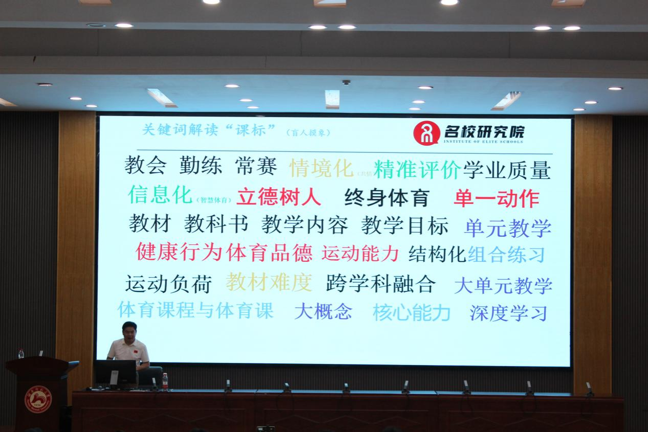 培训会上,杨伯群老师凭借丰富的教学经验和深厚的专业知识,围绕中小学体育教育热点,如学校体育多维目标、体育创新、高质量体育课堂教学等内容展开讲解。他深度解析《义务教育体育与健康课程标准》的改革动向,强调课程在增进学生身心健康、发展核心素养方面的重要性,并以“教会、勤练、常赛”等关键词为切入点,深入剖析体育教学的核心要点。