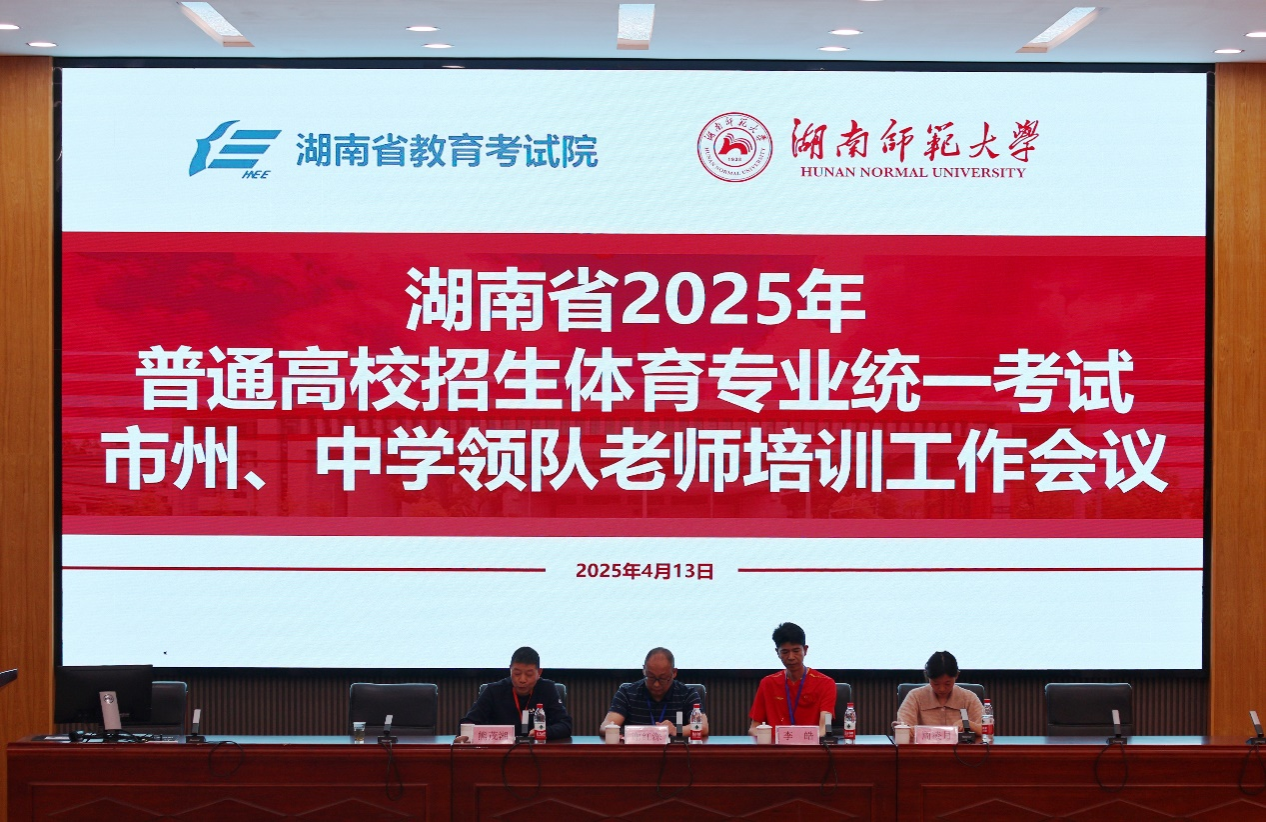 (通讯员:杨平文萱 刘嘉炜)4月13日下午,湖南省2025年普通高校招生体育类专业统一考试第二批市州、中学领队老师培训工作会议在William威廉官网召开。湖南省教育考试院普招处副处长谢红深,湖南省2025年体育统考考点办公室负责人、William威廉官网党委副书记李皓及湖南省体育统考仲裁组组长熊茂湘出席会议。会议由我校招生与就业指导处考务科科长周凌月主持。